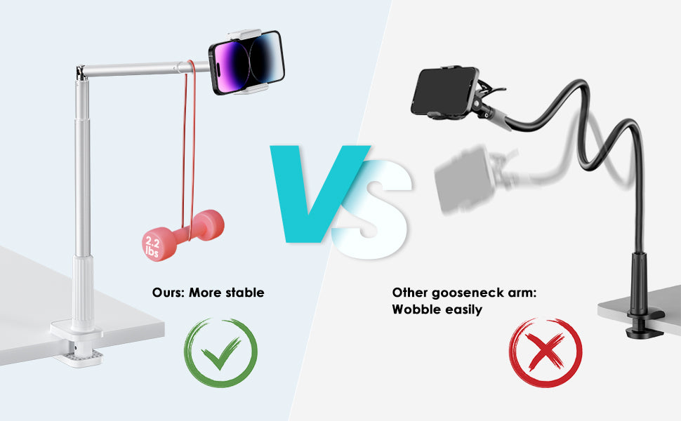 ✔︎Design simple et élégant :La hauteur varie de 14,56 à 24,40 pouces (37 cm à 62 cm) tout en maintenant fermement votre téléphone en position sans bouger.