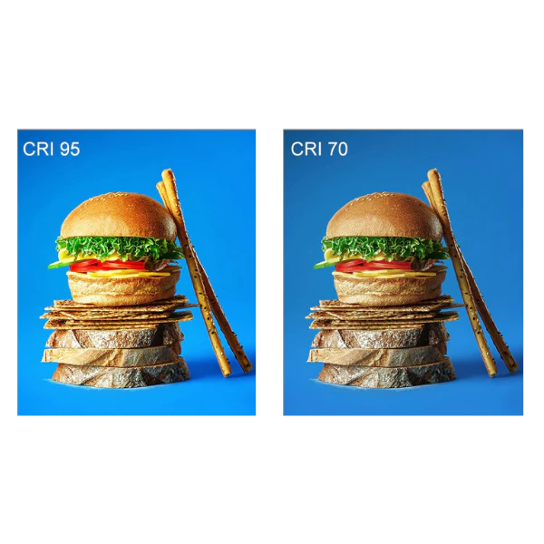 ✔︎ Color Rendering Index (CRI) is the measurement of how colours look under a light source when compared with sunlight. The index is measured from 0-100.